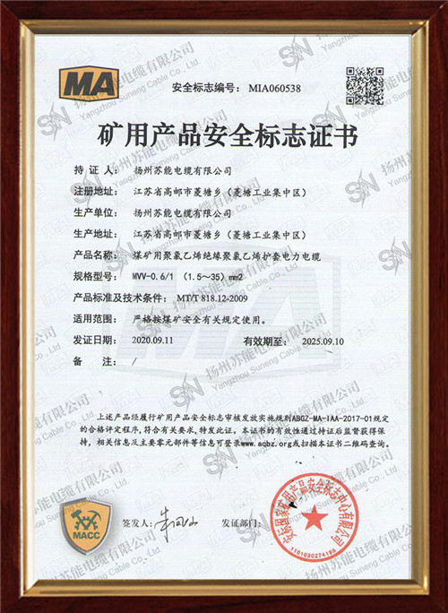 矿用产品安全标志证书