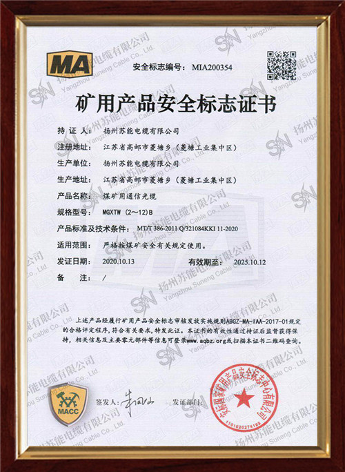 • 矿用产品安全标志证书
