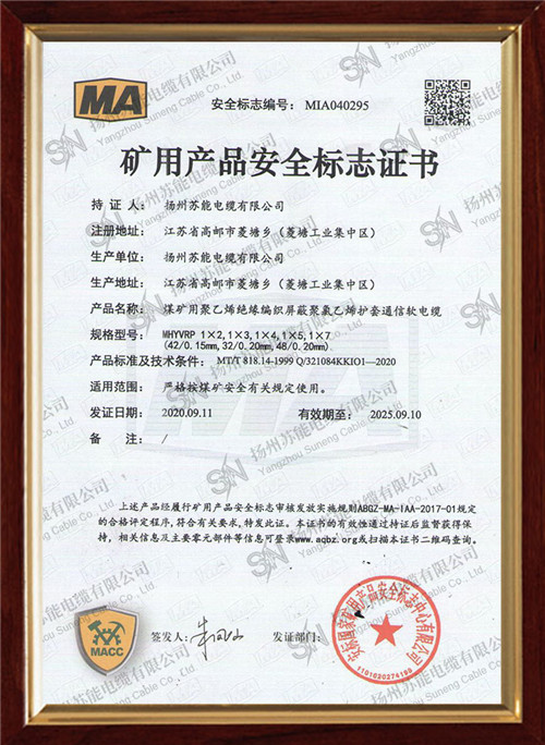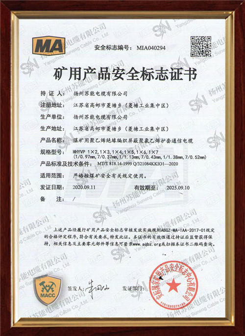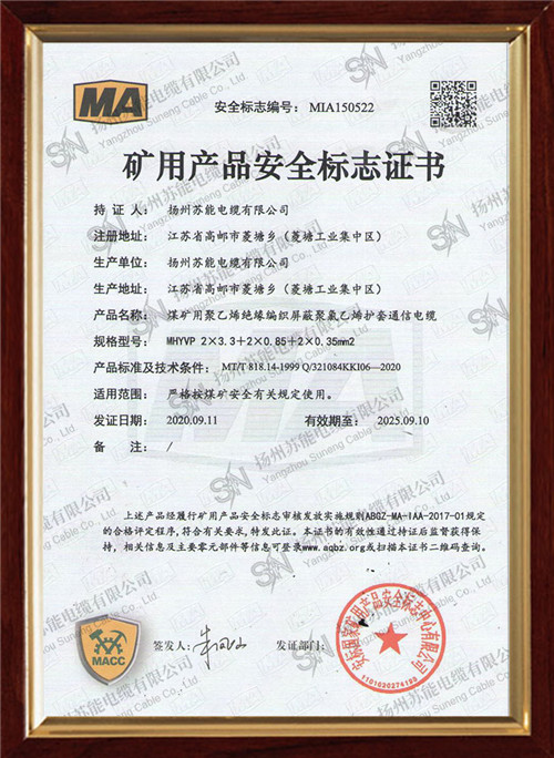 矿用产品安全标志证书